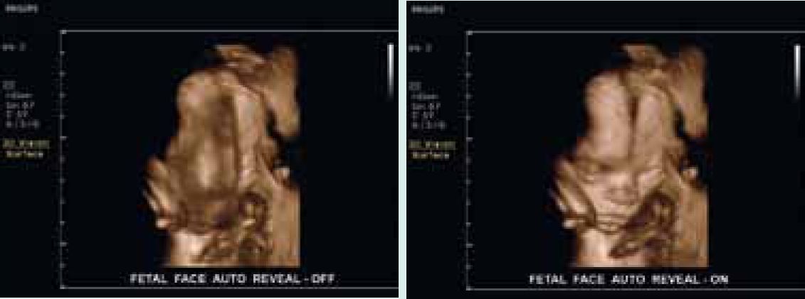 В фирменной функции автоматического воспроизведения лица используется метод автоматической сегментации, позволяющий «удалять» из объема 3D/4D-данных лишние ткани и шум перед лицом плода путем определения сферы расположения черепа.